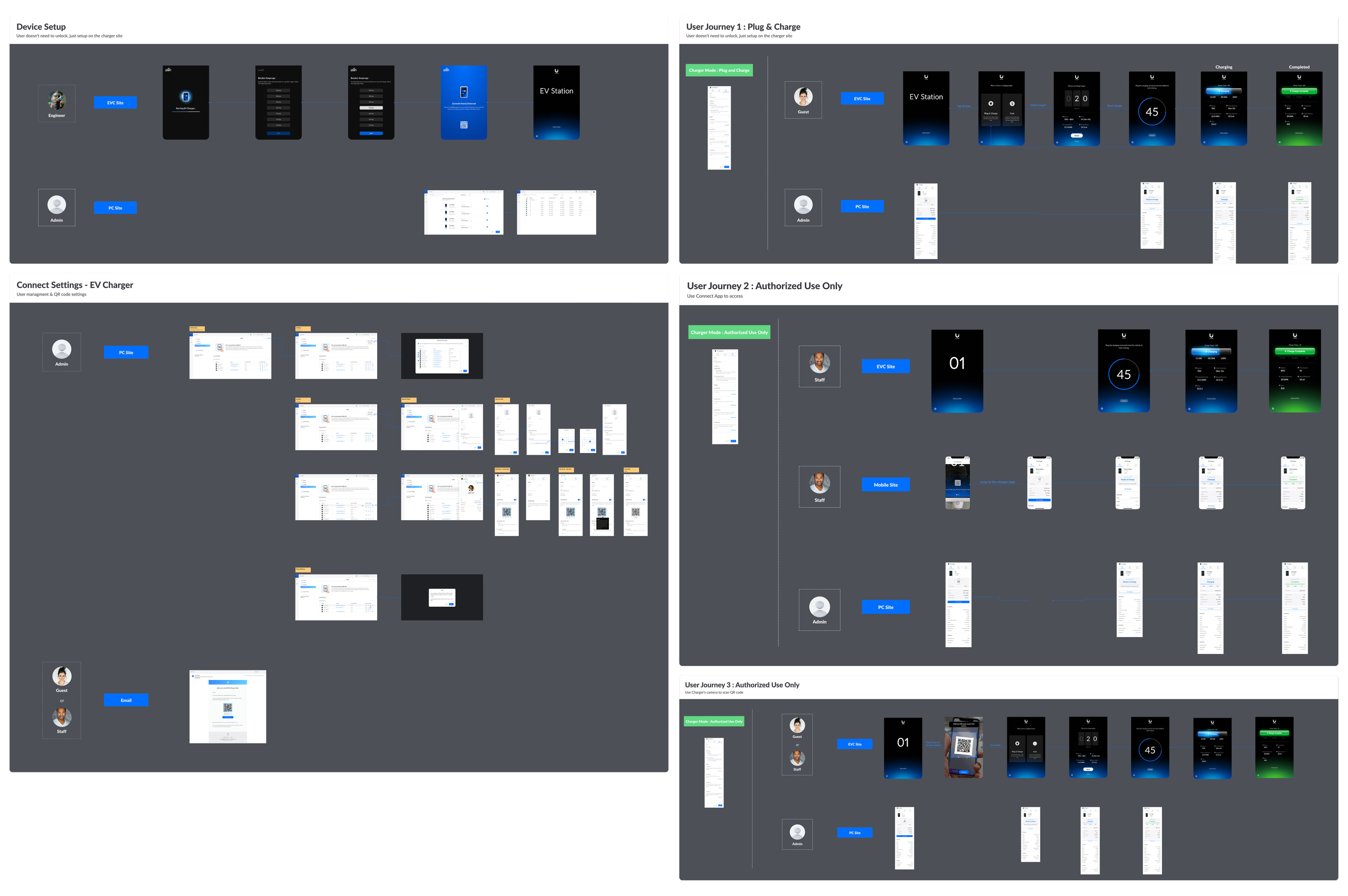 The design evolved through real hardware testing, internal feedback loops, and iterative refinement based on user insights. The result is a fully integrated solution that spans the charger’s UI, mobile apps, and web management tools.