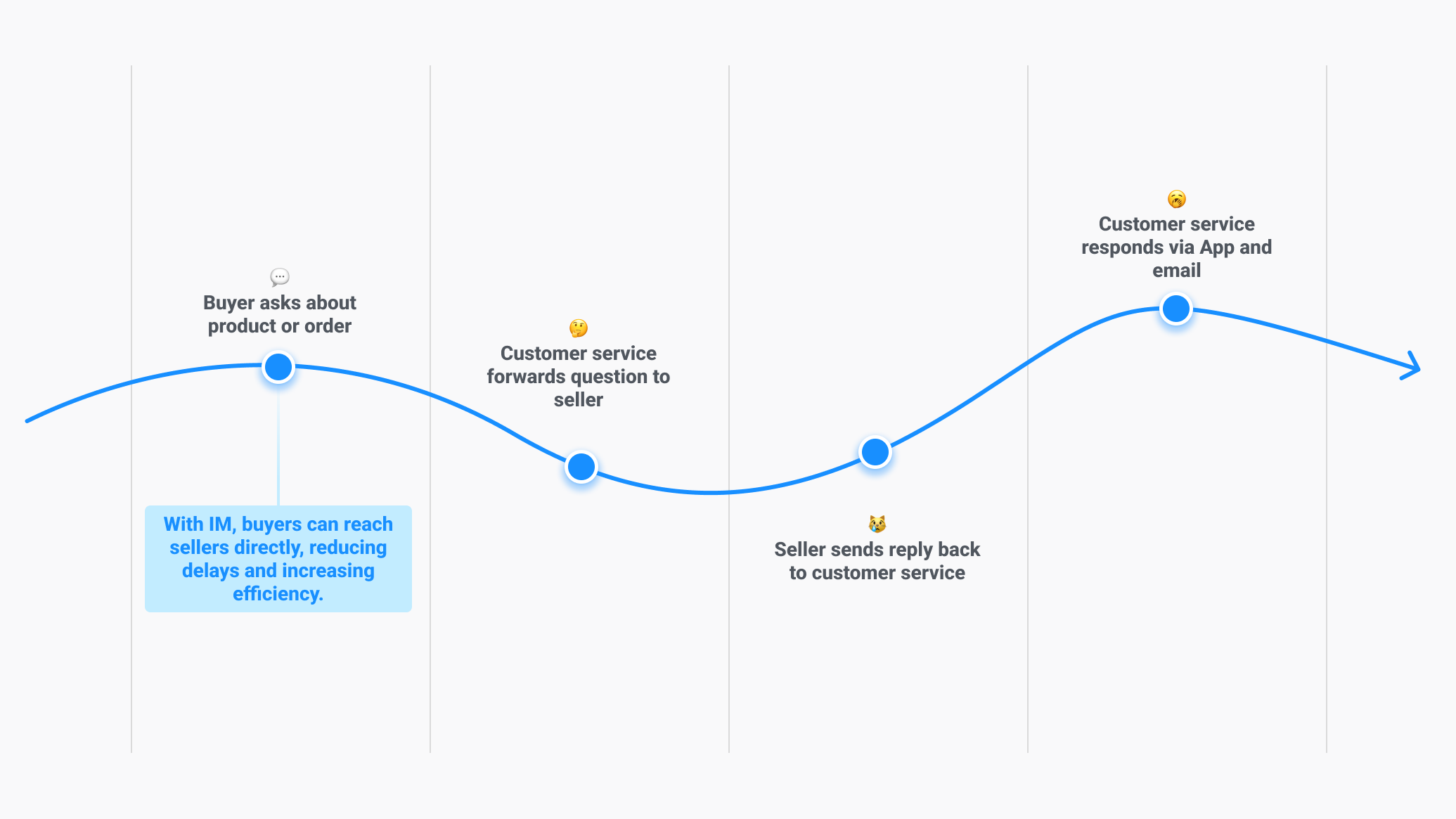 At the time, communication between buyers and sellers relied entirely on the customer service team as an intermediary. When buyers had questions about products or orders, messages were first routed to customer service, then forwarded to sellers, and eventually relayed back to buyers.